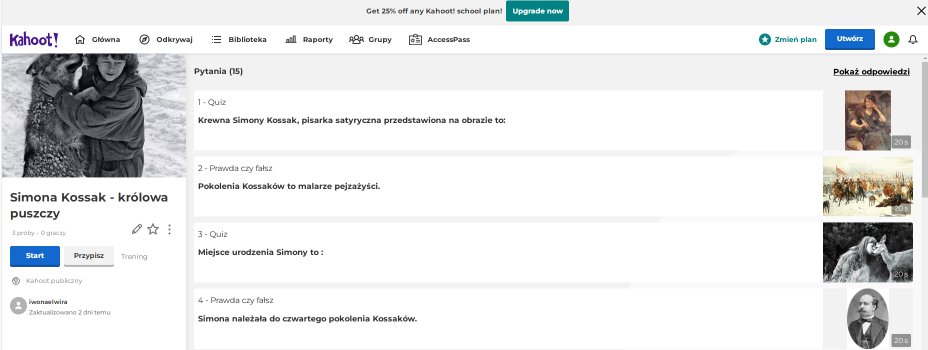 Simona Gabriela Kossak Simona Gabriela Kossak Prezentacja Broszura Mapa Kahoot Learning Apps Simona Gabriela Kossak - kobieta w mateczniku Simona Gabriela Kossak - kobieta w mateczniku Link do boroszury Link do mapy Link do quizu Link do aplikacji